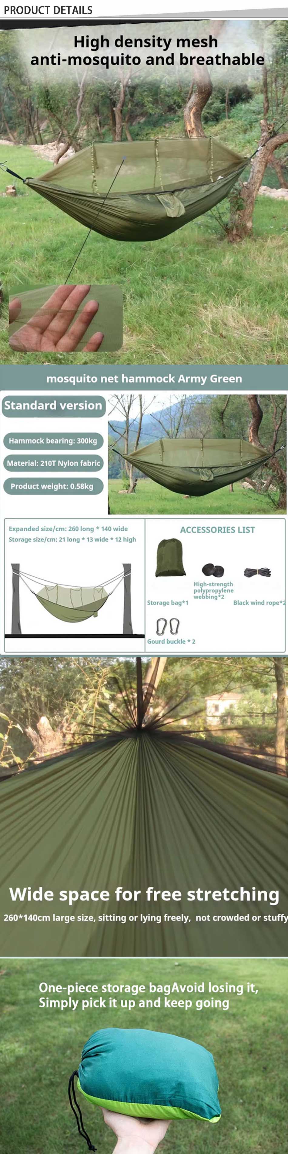 제품 : 이 300C 200cm 이중 인용 해먹에는 보호를위한 내장 모기장이 있으며 넓고 편안하며 통기성이 뛰어나는 디자인을 제공하며 야외 캠핑, 하이킹 및 편안한 모험에 적합합니다.