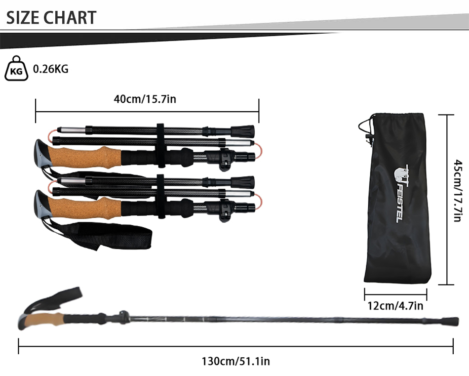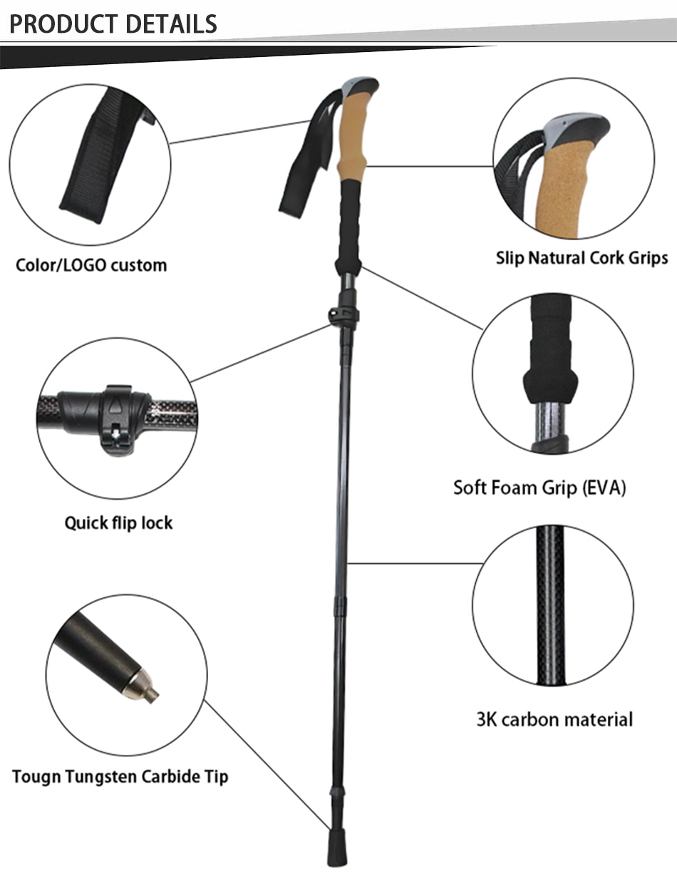 제품 : 경량 알루미늄 합금 접이식 지팡이는 인체공학적 코르크 손잡이, 높이 조절 기능, 내구성 있는 고무 팁을 갖추고 있어 하이킹, 트레킹, 등산 및 일상적인 야외 산책 시 안정적인 지지력을 제공합니다.