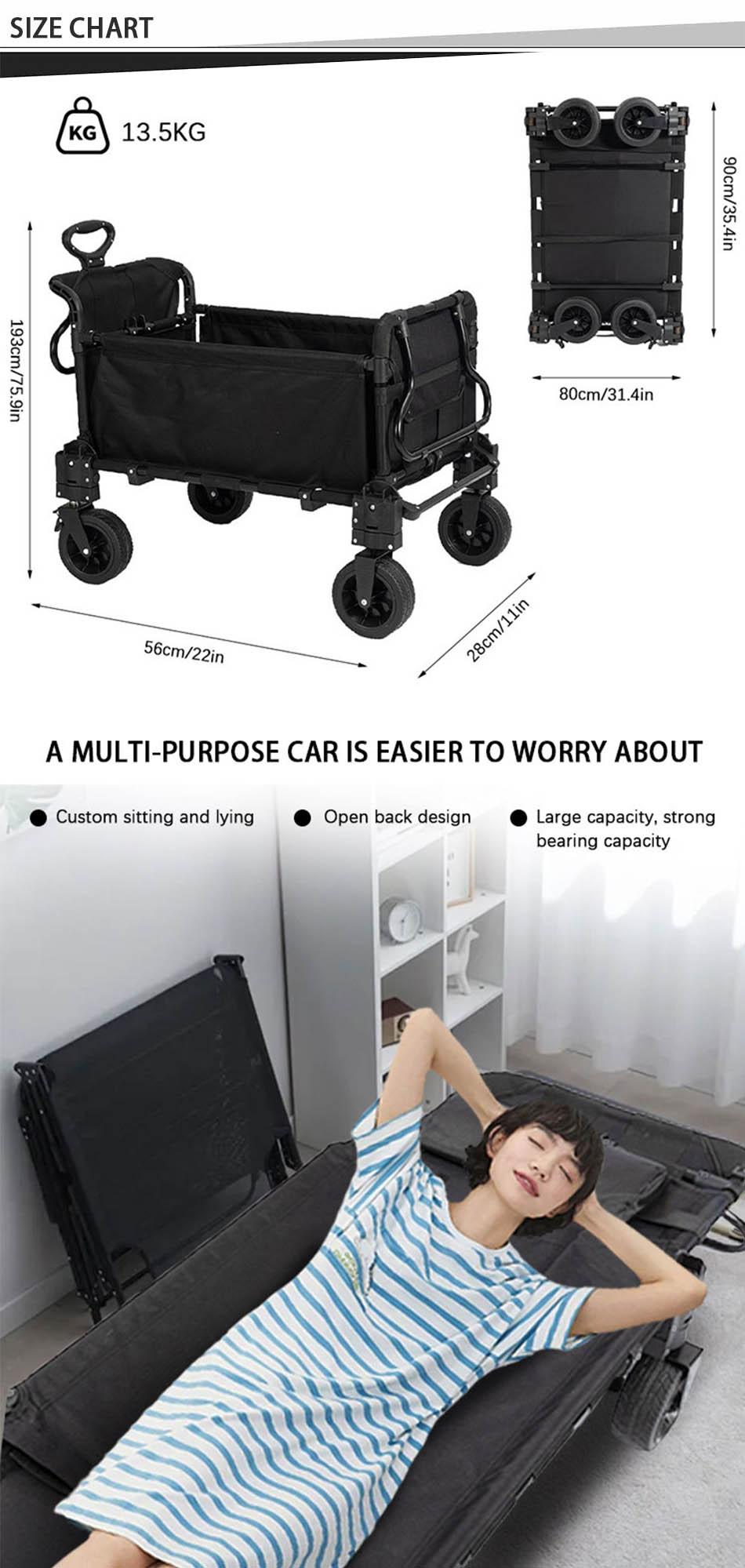 최대의 편의를 위해 설계된이 제품은 쇼핑 트롤리, 접을 수있는 유틸리티 마차, 심지어 소파 베드 역할을하여 다양한 요구에 이상적입니다.