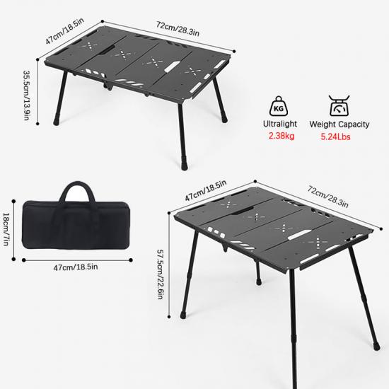 제품 : 이 맞춤형 야외 휴대용 접이식 테이블은 초경량 알루미늄 합금 프레임을 특징으로하며 IGT 호환 디자인으로 캠핑, 하이킹 및 야외 모험을위한 내구성과 편의성을 제공합니다.