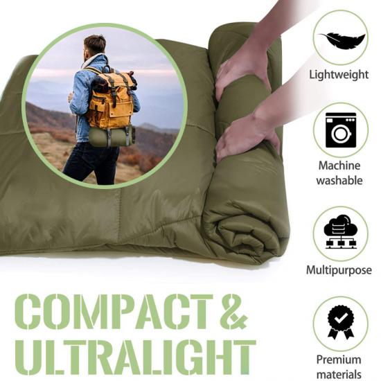 1. 이 다운 캠핑 담요는 접었을 때 작은 크기입니다, 보관이 매우 편리합니다. 크기는 배낭에 쉽게 넣을 수 있는 34x15cm/13.3x5.9inch,입니다.