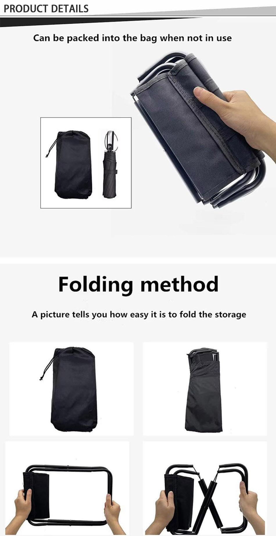 제품 : 이 고강도 방수 강철 캠핑용 의자는 가볍고, 접이식이며, 휴대가 간편하여 해변 여행, 캠핑, 하이킹, 낚시, 야외 모험에 내구성과 편안함을 제공합니다.
