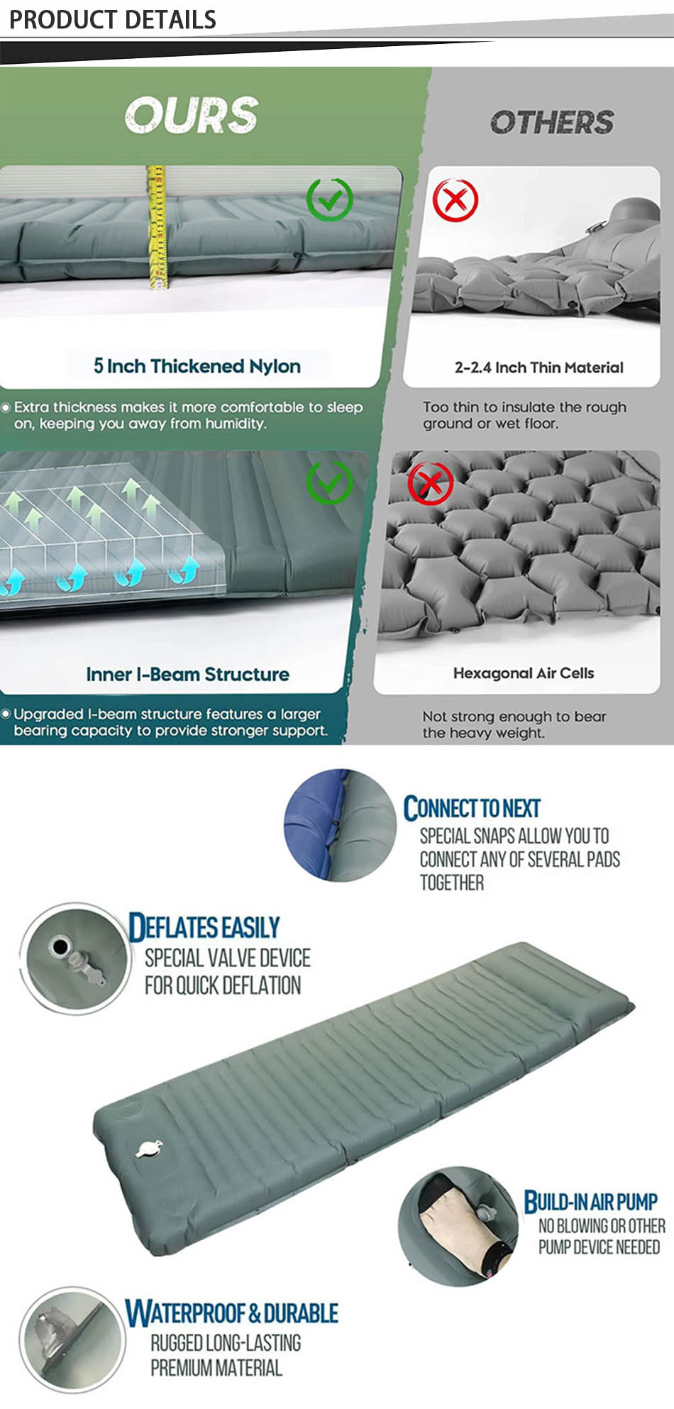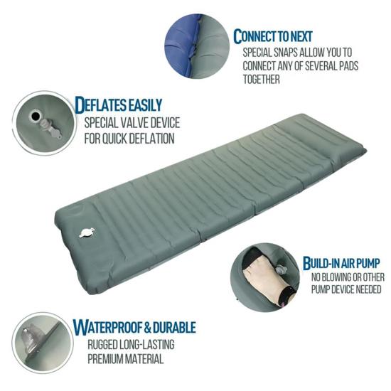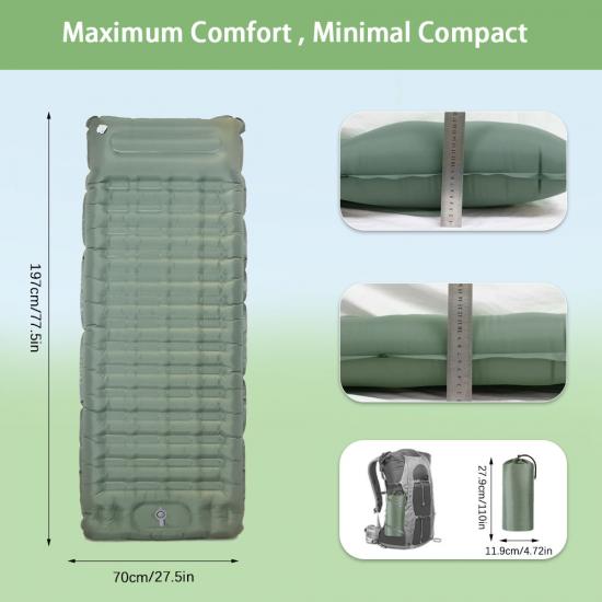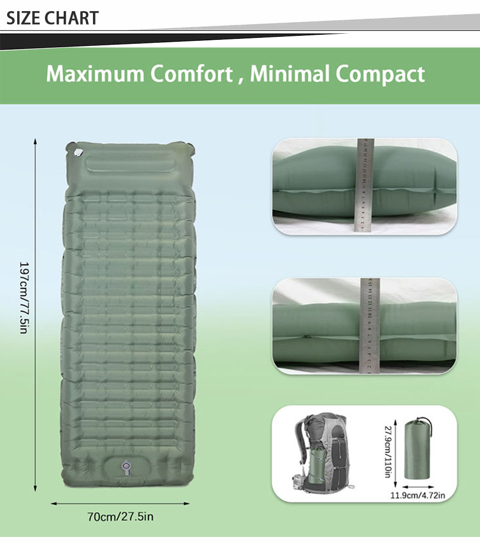 제품 : 가벼운 캠핑용 팽창 매트는 야외 모험에 편안함과 지지력을 제공하여 하이킹, 캠핑 또는 배낭여행을 위한 완벽한 여행용 침대 패드입니다.