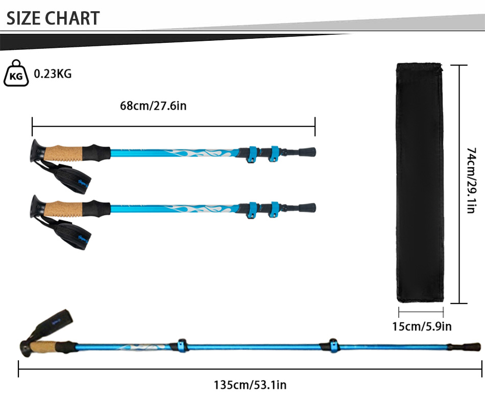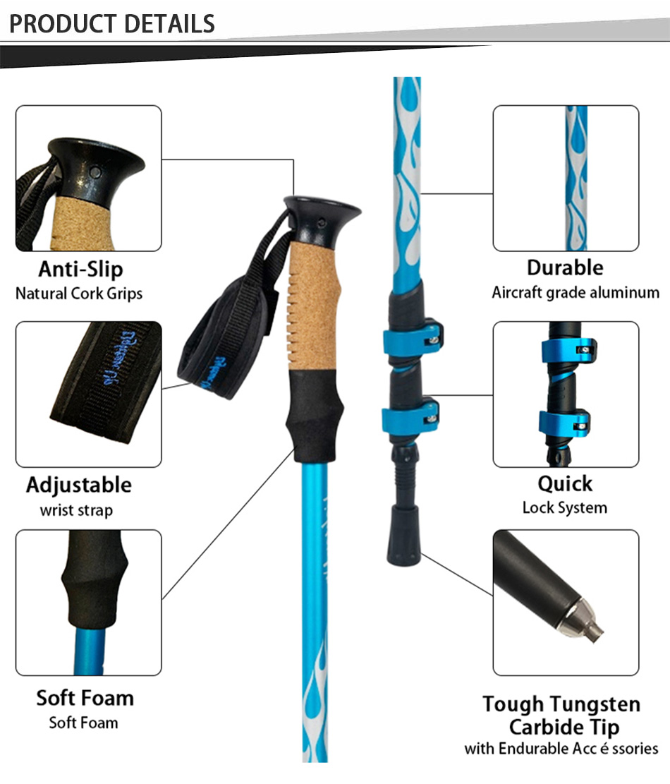 제품 : 천연 코르크 손잡이와 EVA 연장대를 사용하여 맞춤 제작된 경량 야외 등산 스틱은 편안함, 안정성 및 내구성을 제공하며 트레킹, 등반 및 장거리 하이킹에 믿을 수 있는 지지력을 제공합니다.