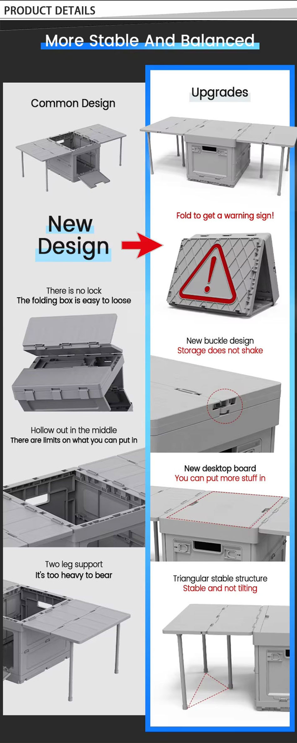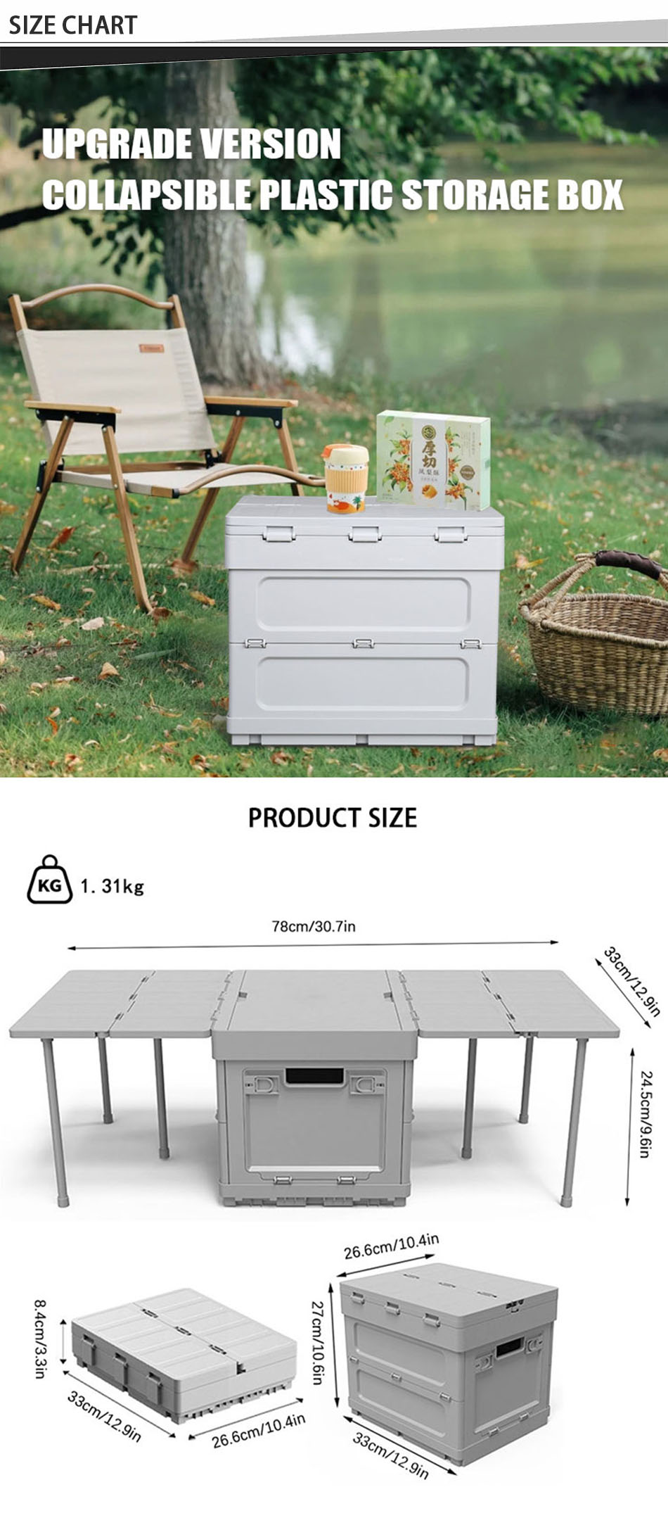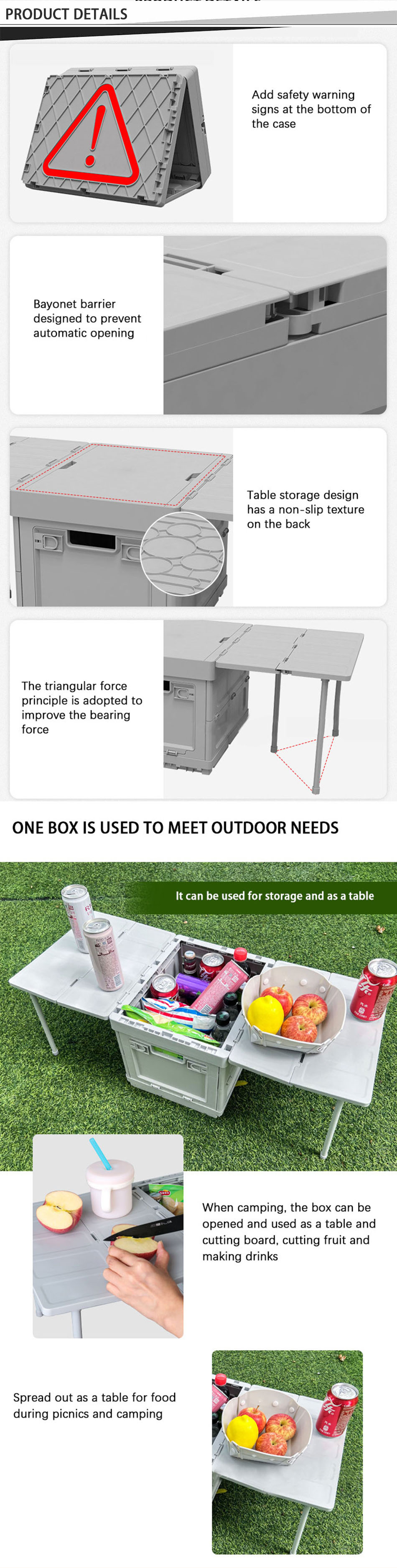 제품 : 이 야외 다기능 사이드 오프닝 플라스틱 보관함은 접을 수있는 수분 방지 설계를 통해 캠핑, 여행 및 다양한 야외 활동을위한 내구성 있고 편리한 보관을 제공합니다.