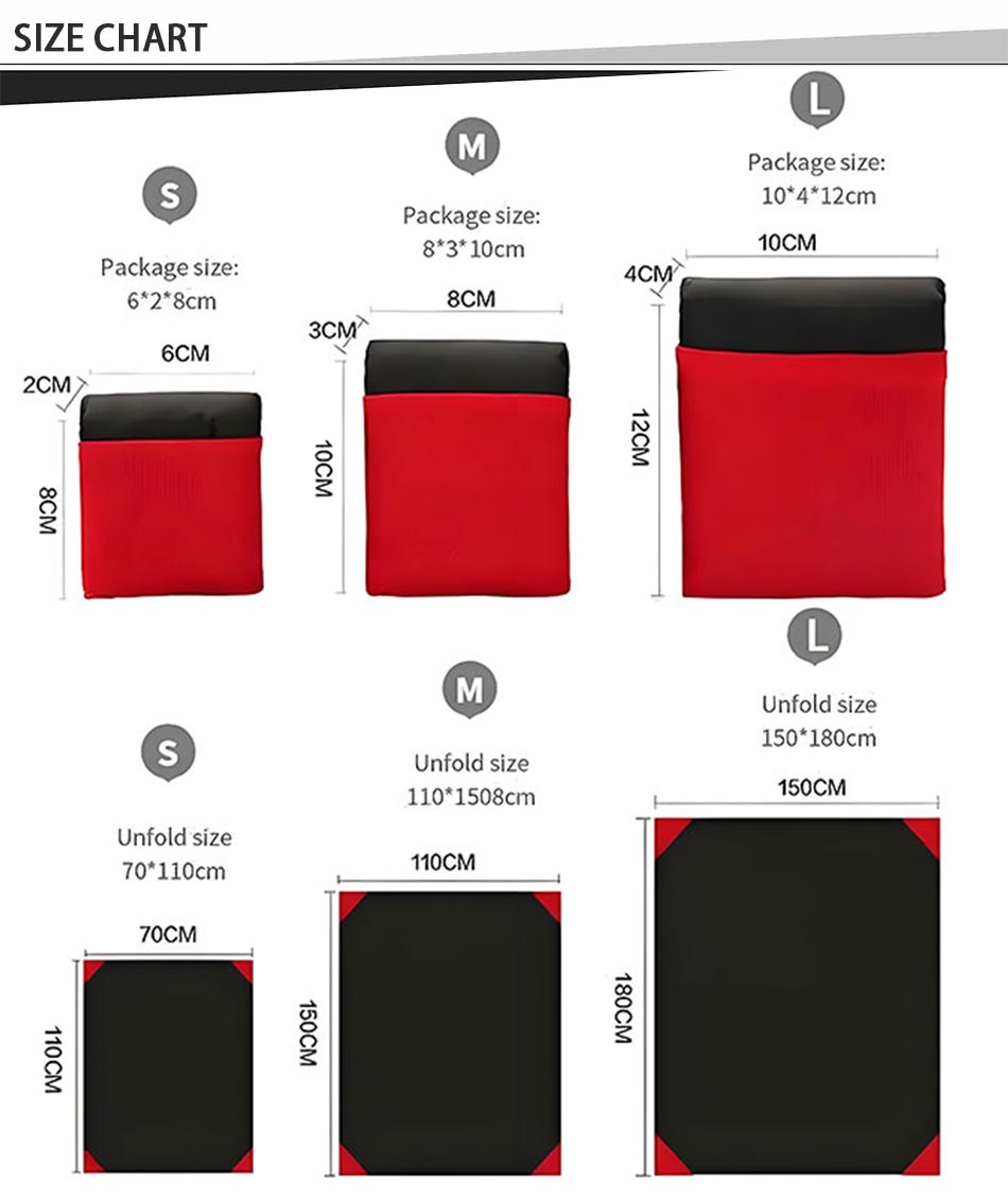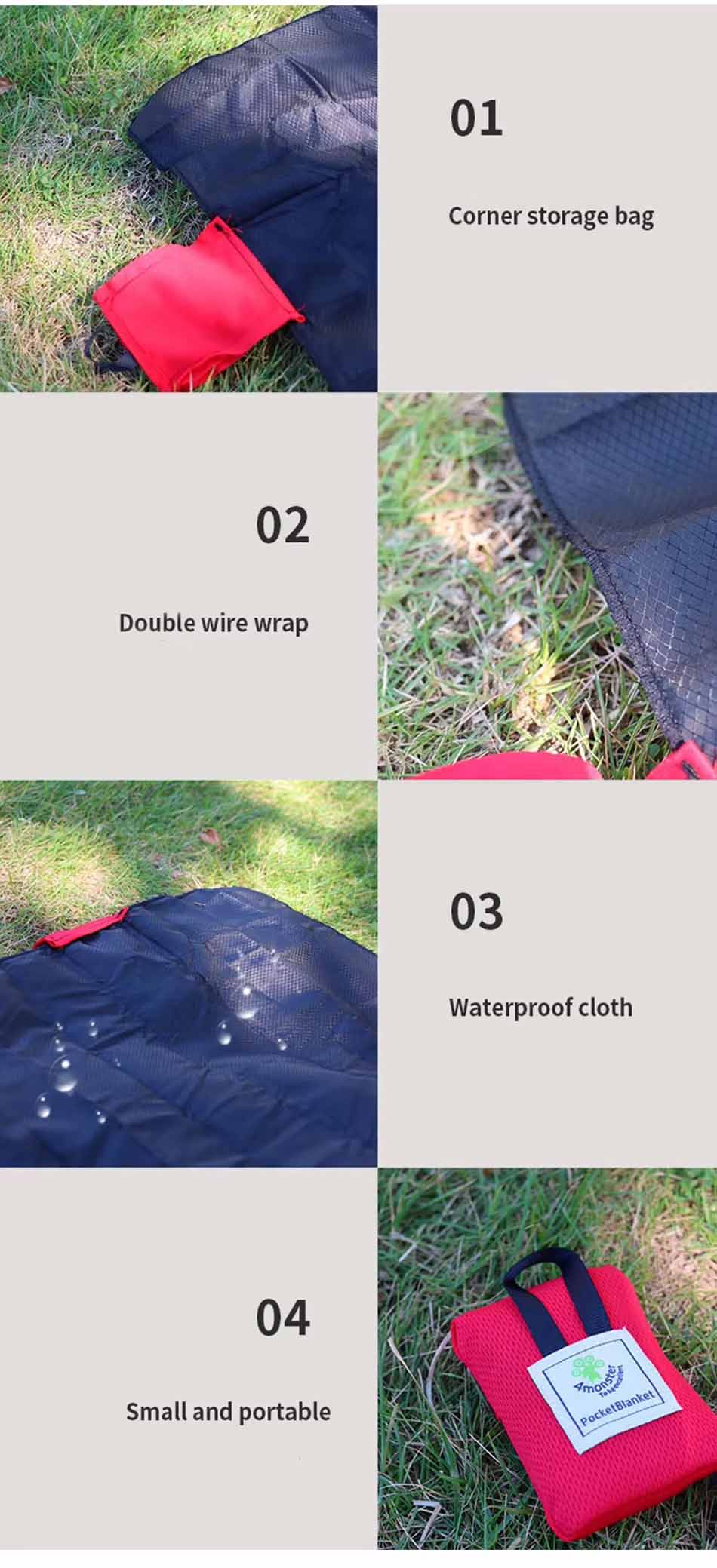 제품 : 이 리프스톱 나일론 방수 포켓 담요는 매우 가볍고, 컴팩트하며, 내구성이 뛰어나 하이킹, 피크닉 또는 여행 중에 편리하게 사용할 수 있도록 주머니에 쉽게 들어갑니다.